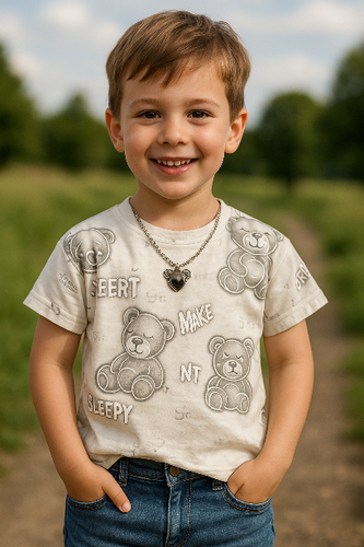 تیشرت آستین کوتاه وارداتی طرح خرس و گردنبند