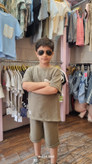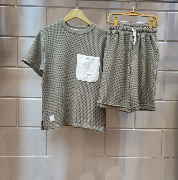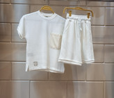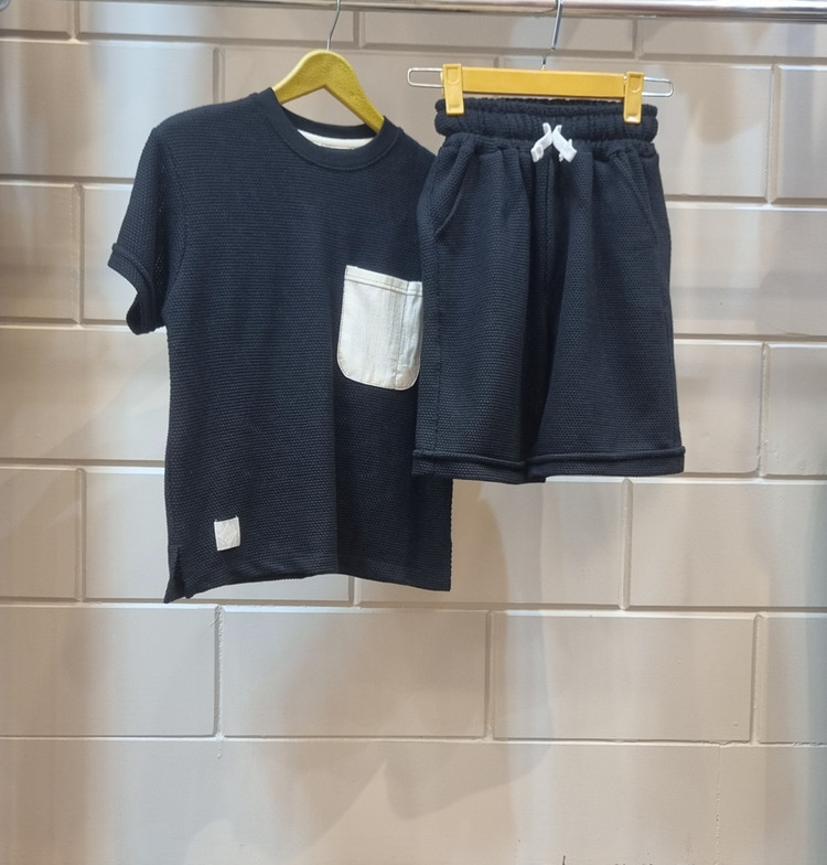 ست تیشرت آستین کوتاه و شلوارک طرح بافت دخترانه پسرانه اسپرت