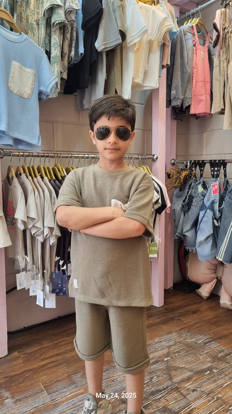 سایز۹_۱۰سال: قد تیشرت ۵۳،پهنای تیشرت ۴۳،قد آستین از سرشانه تا بازو ۲۹⬅️ قد شلوارک ۴۵، قد شلوارک تا فاق ۲۴، کمر کش ۲۶