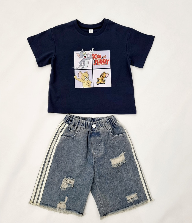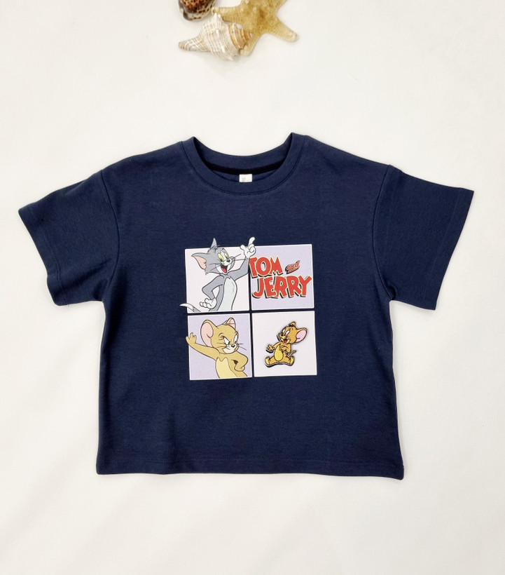 تیشرت آستین کوتاه بچگانه وارداتی تام و جری برچسبی