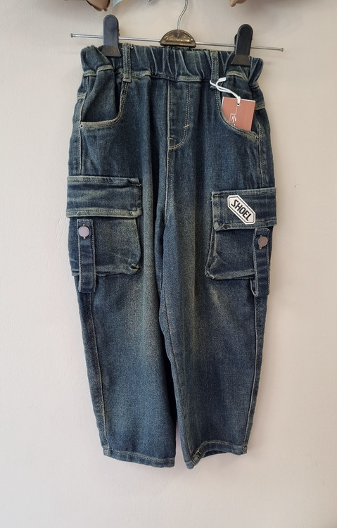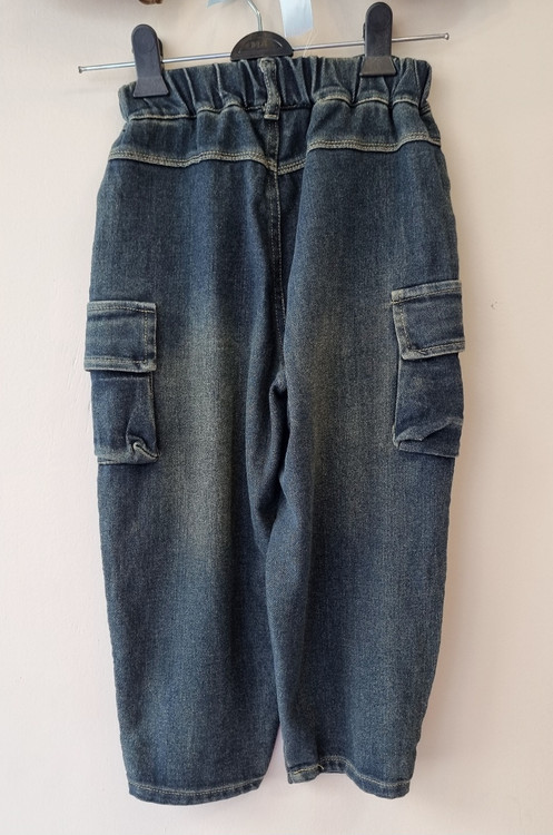 شلوار جین نیمه مام بغل جیب دار سورمه ای تیره دخترانه و پسرانه