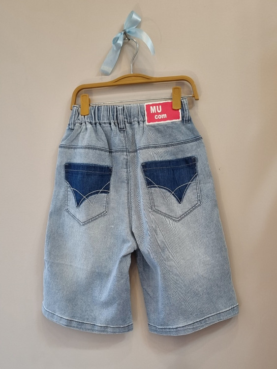 شلوارک جین کاغذی آبی روشن اسپرت دخترانه و پسرانه