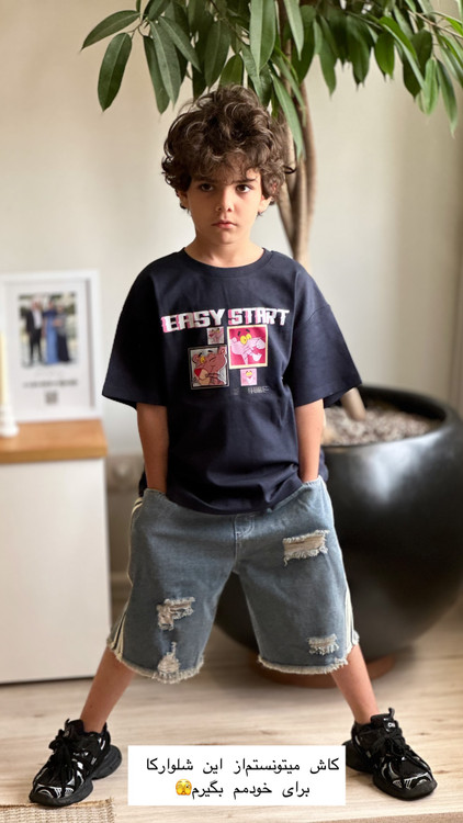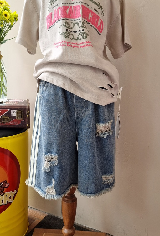 شلوارک جین واید بغل سه خط دخترانه و پسرانه