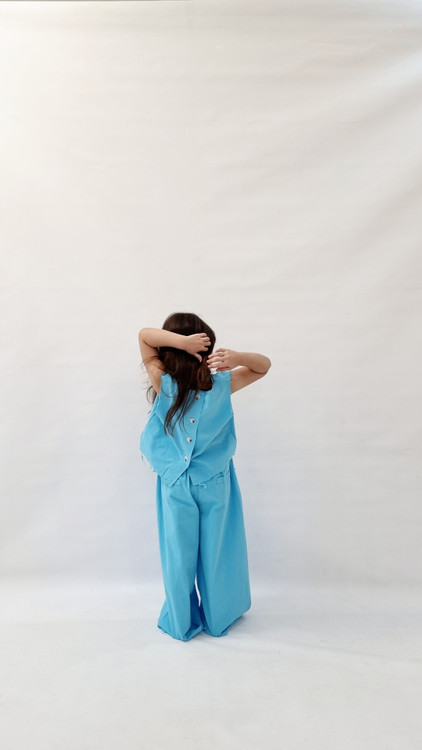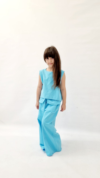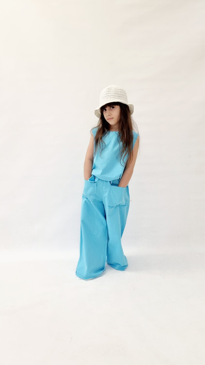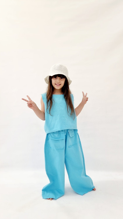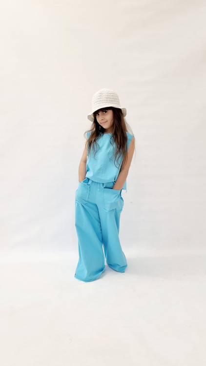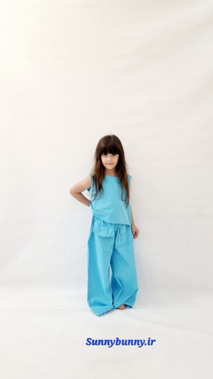 ست کراپ حلقه ای و شلوار بگ آبی آسمونی دخترانه اسپرت