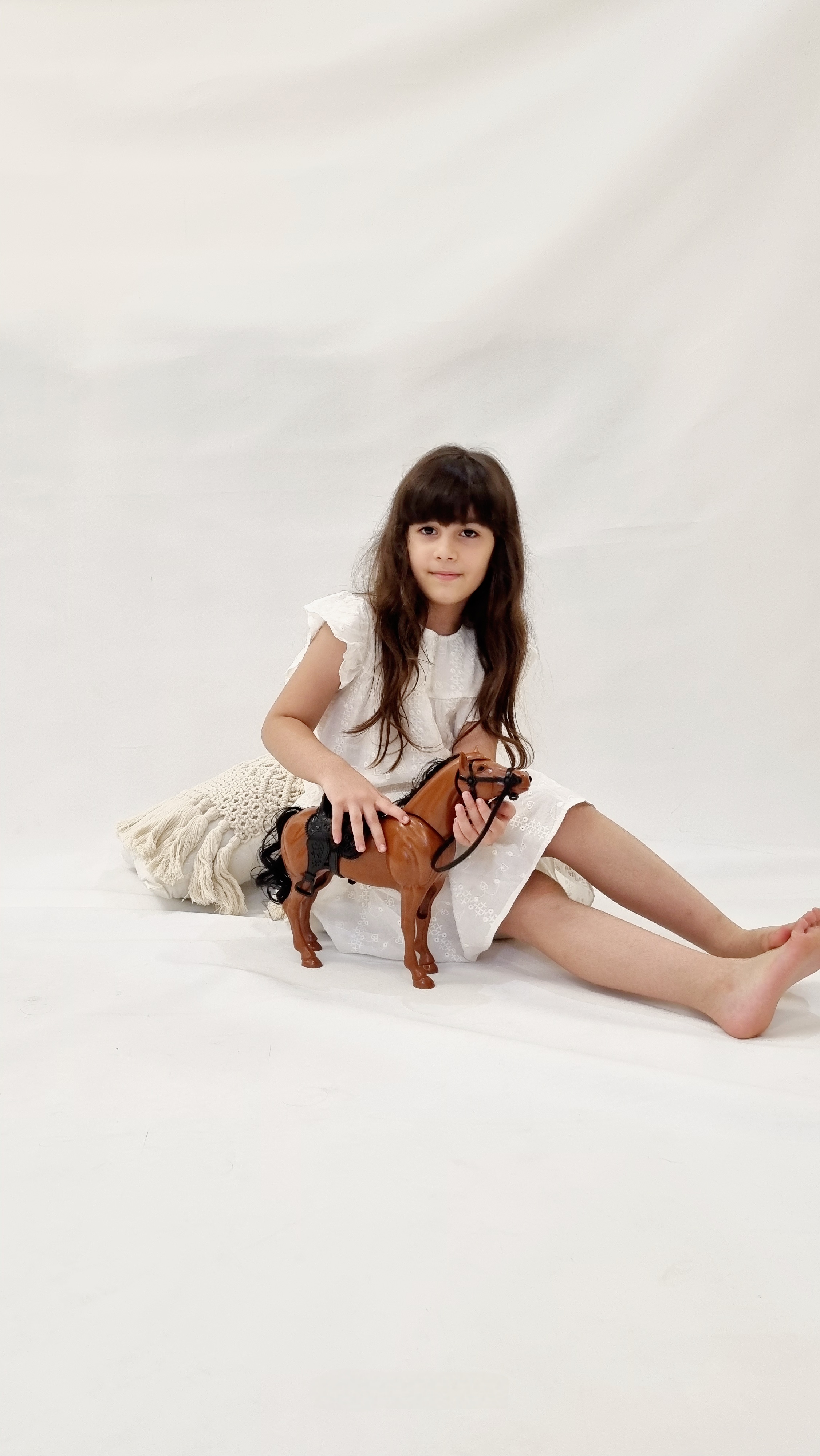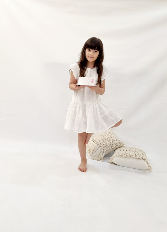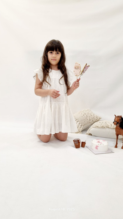 پیراهن سفید دخترانه گلدوزی شده طرح آستین فرشته دخترانه