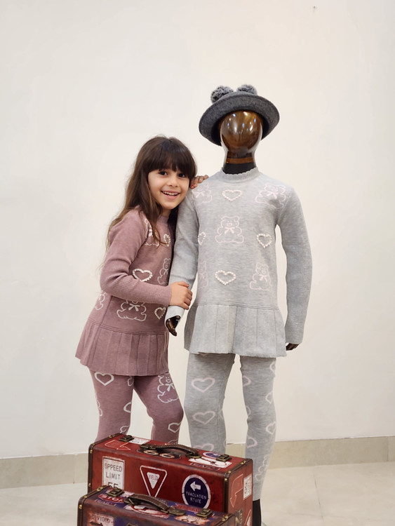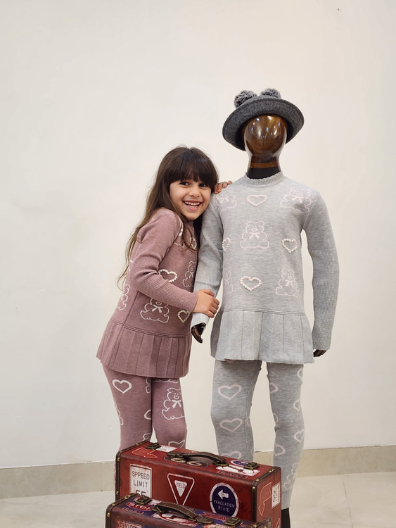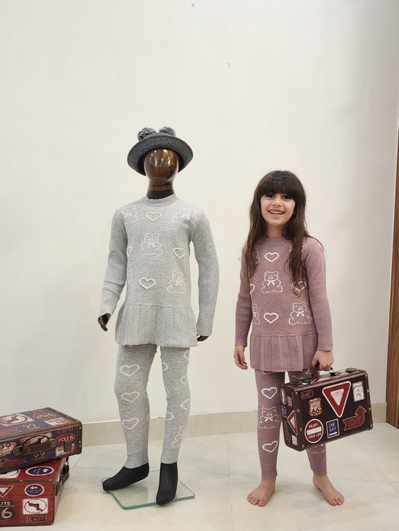 تونیک و شلوار بافت دخترانه طرح خرس و قلب