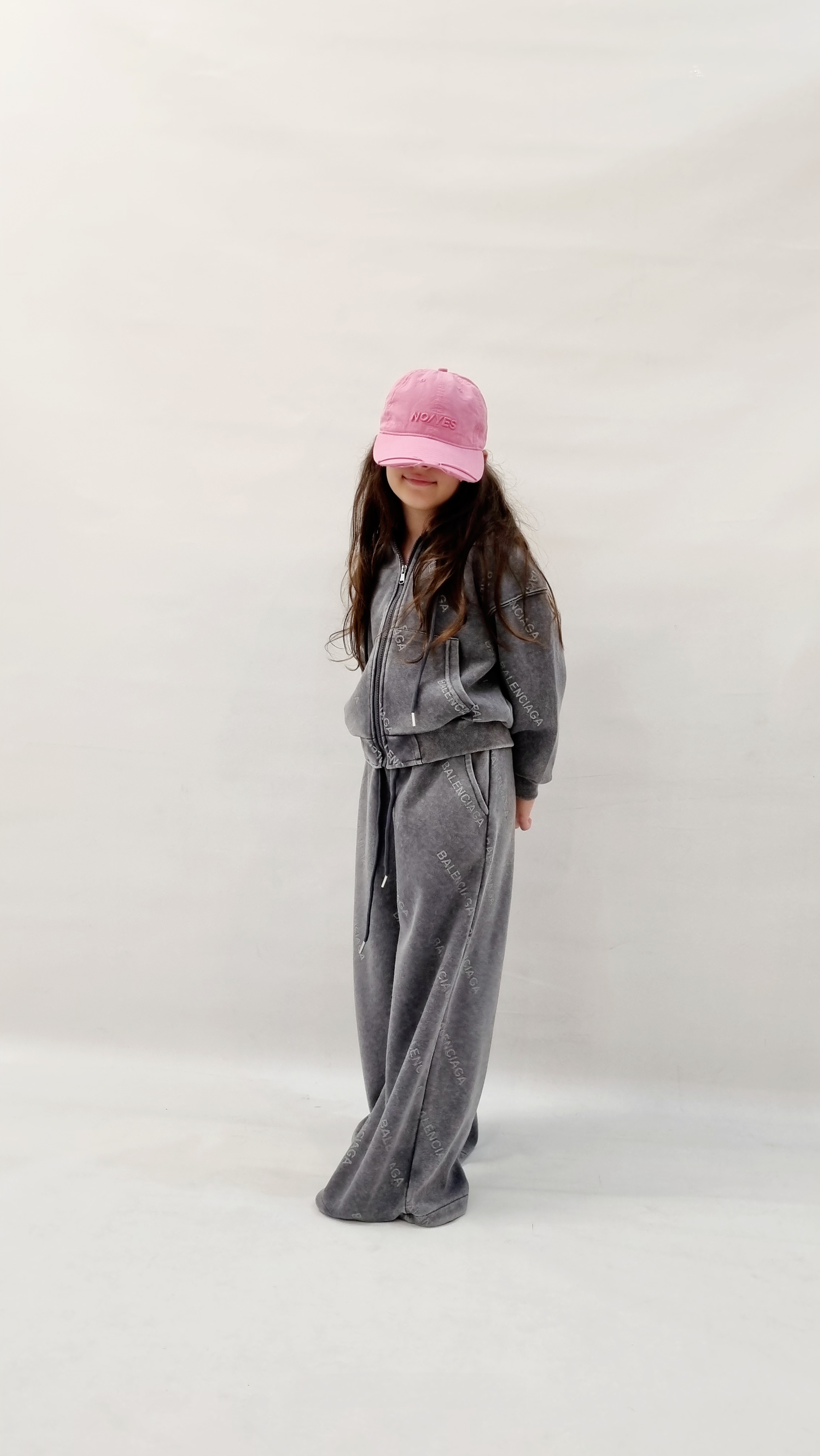ست سویشرت و شلوار اسپرت سنگشور طوسی دخترانه اکلیل دار