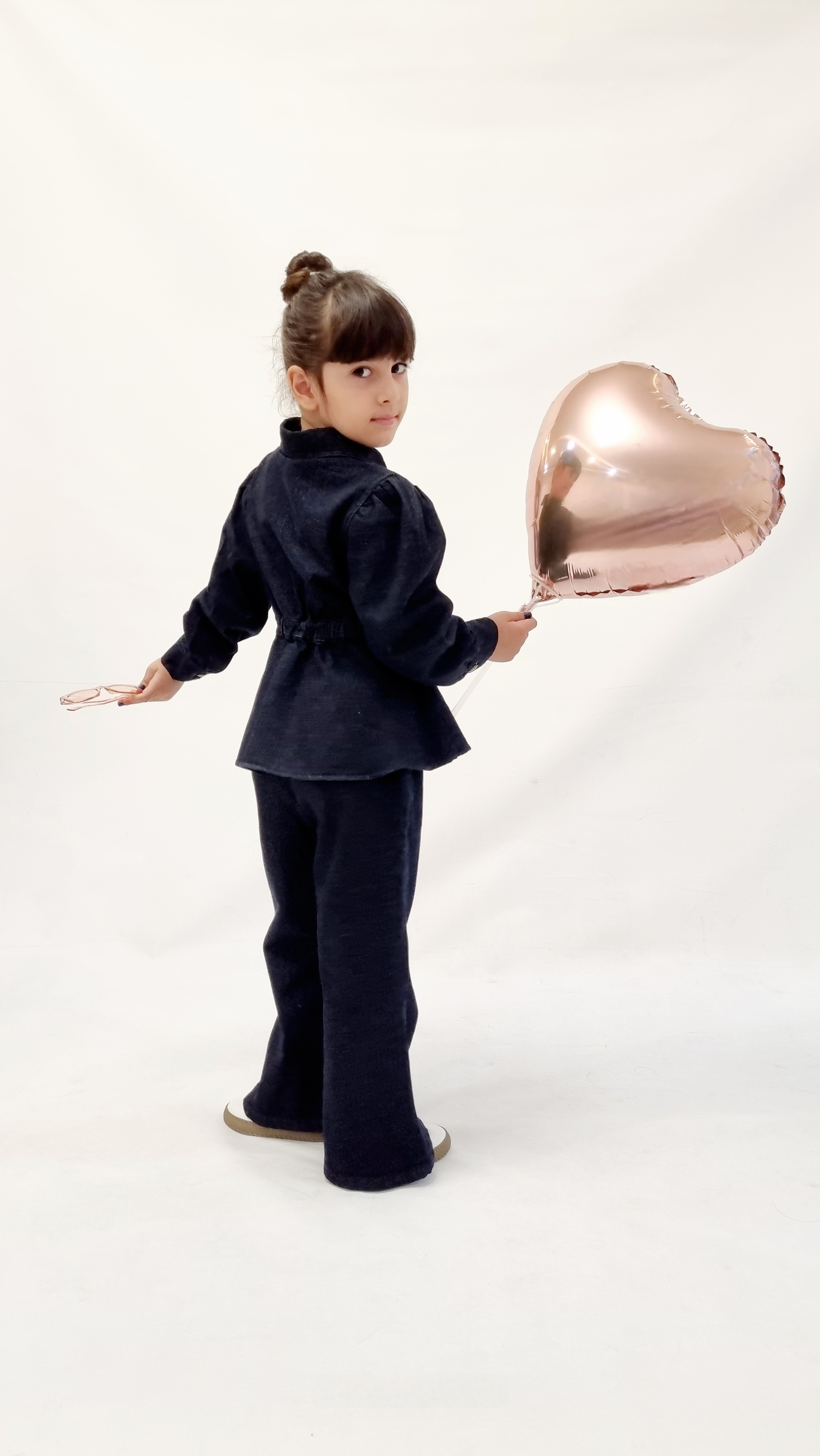 ست کت و شلوار جین دخترانه سورمه ای تیره