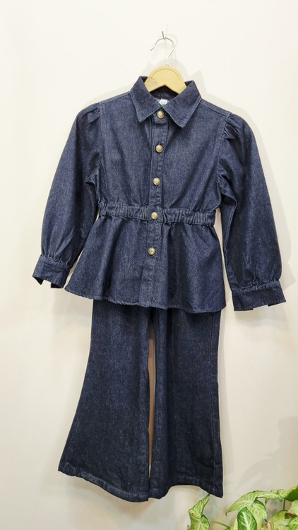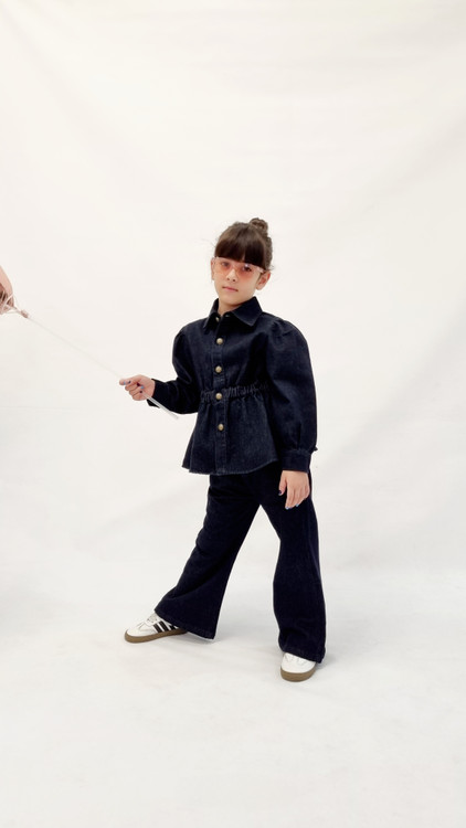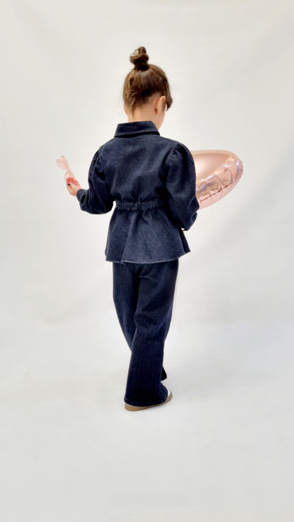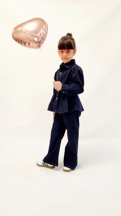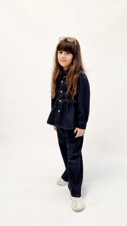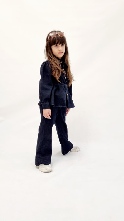 ست کت و شلوار جین دخترانه سورمه ای تیره