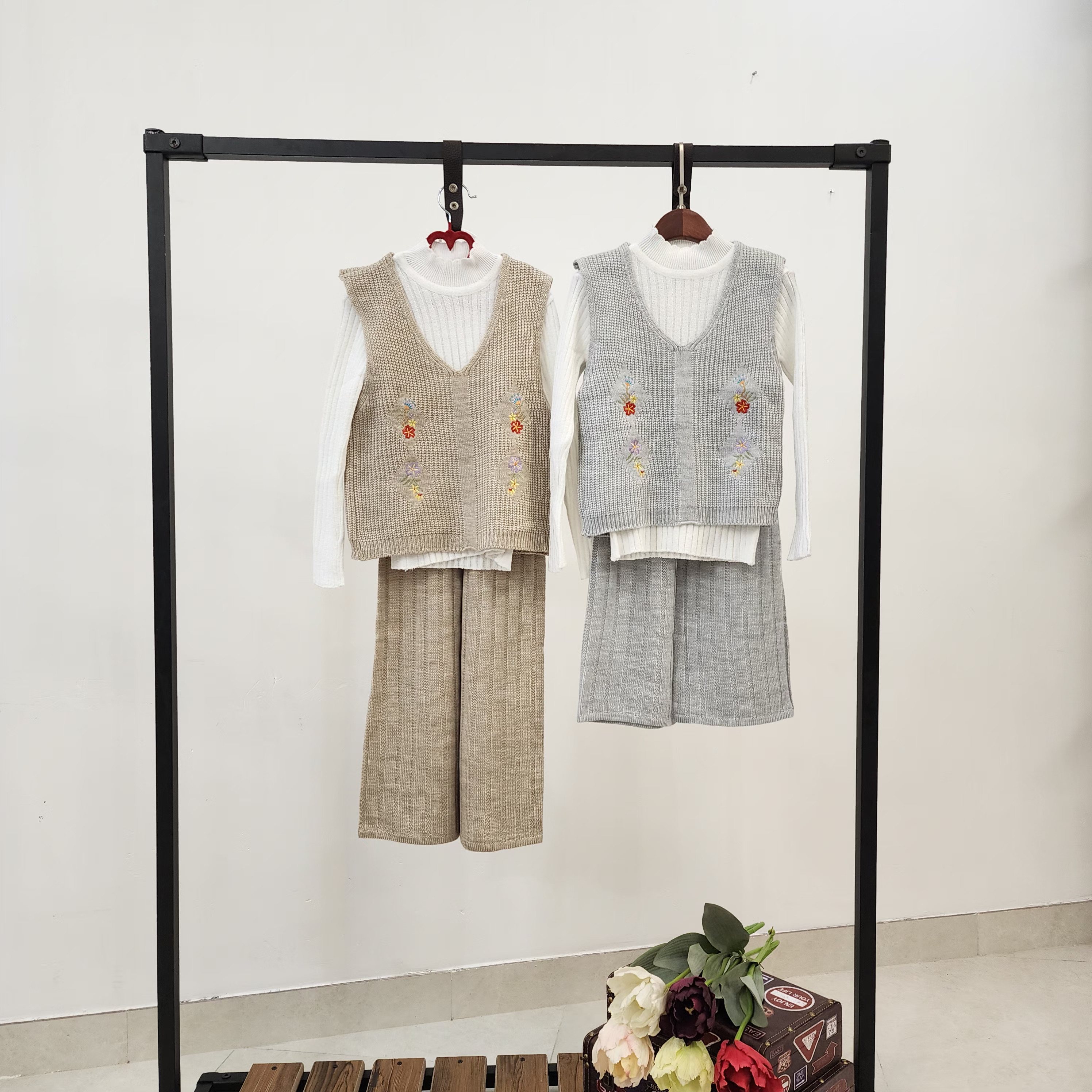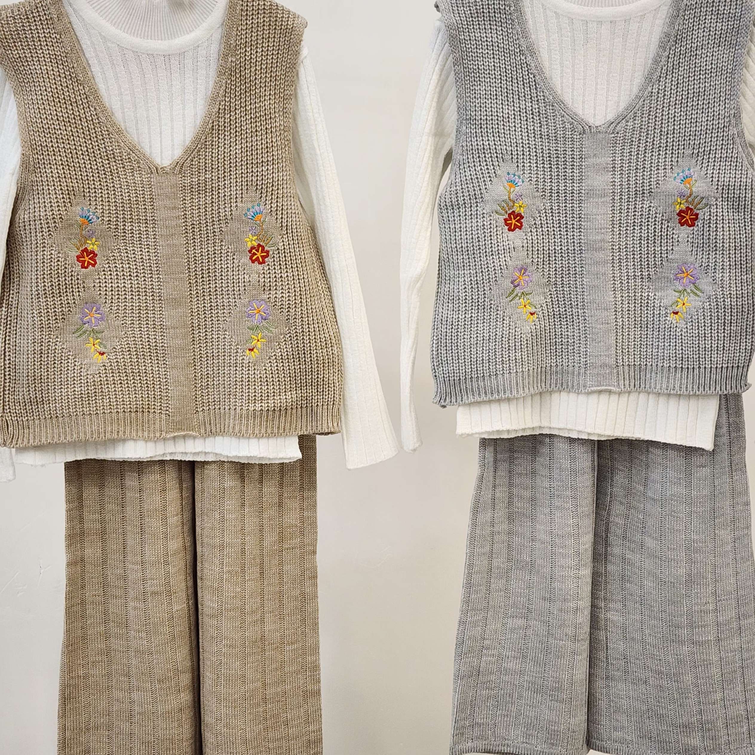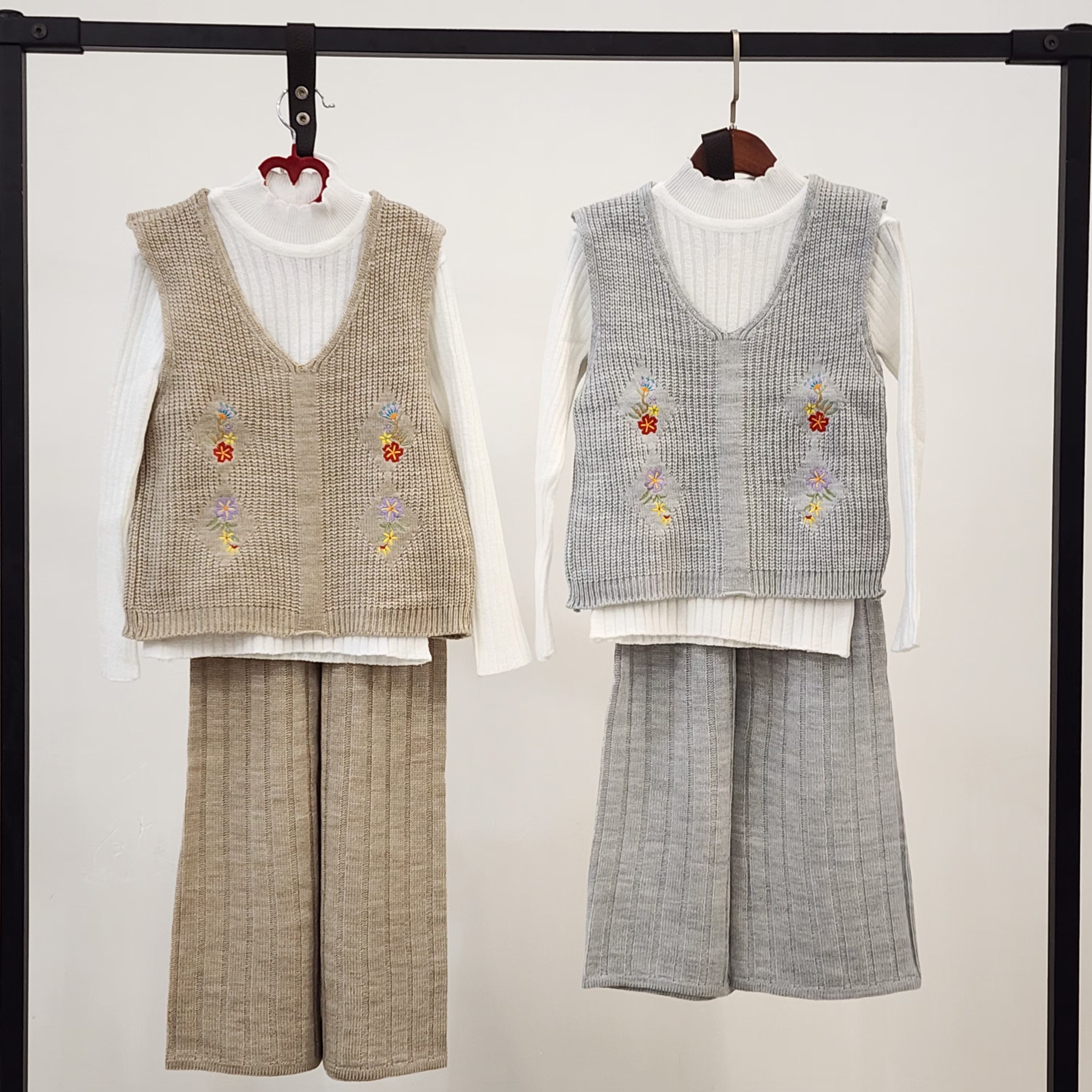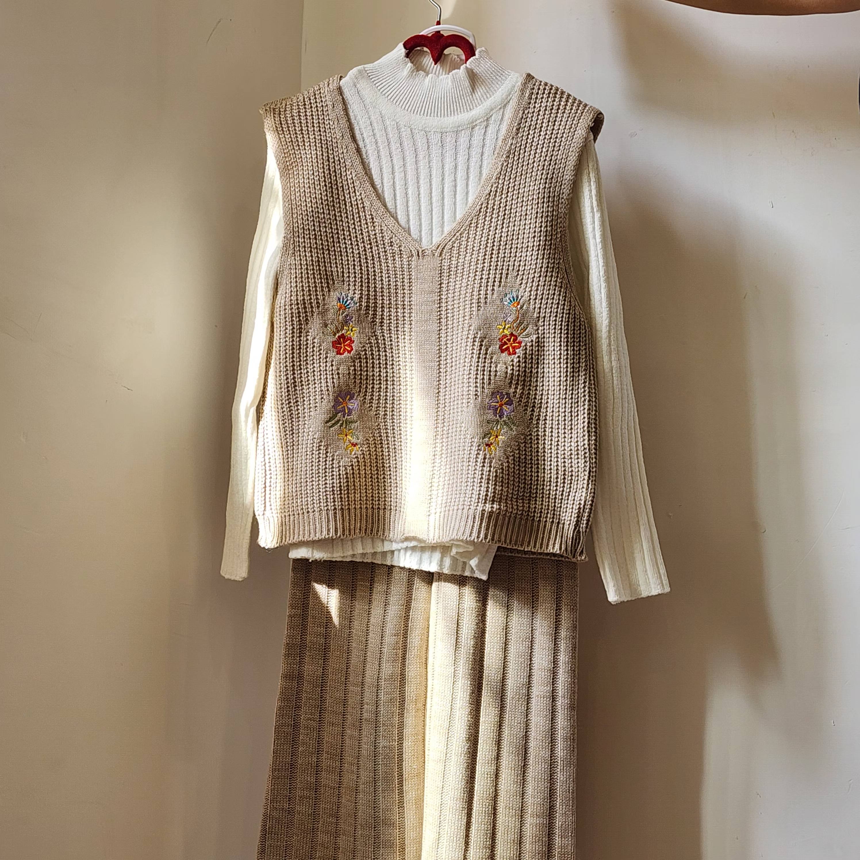 ست سه تیکه بافت دخترانه شلوار و ژیله گلدار