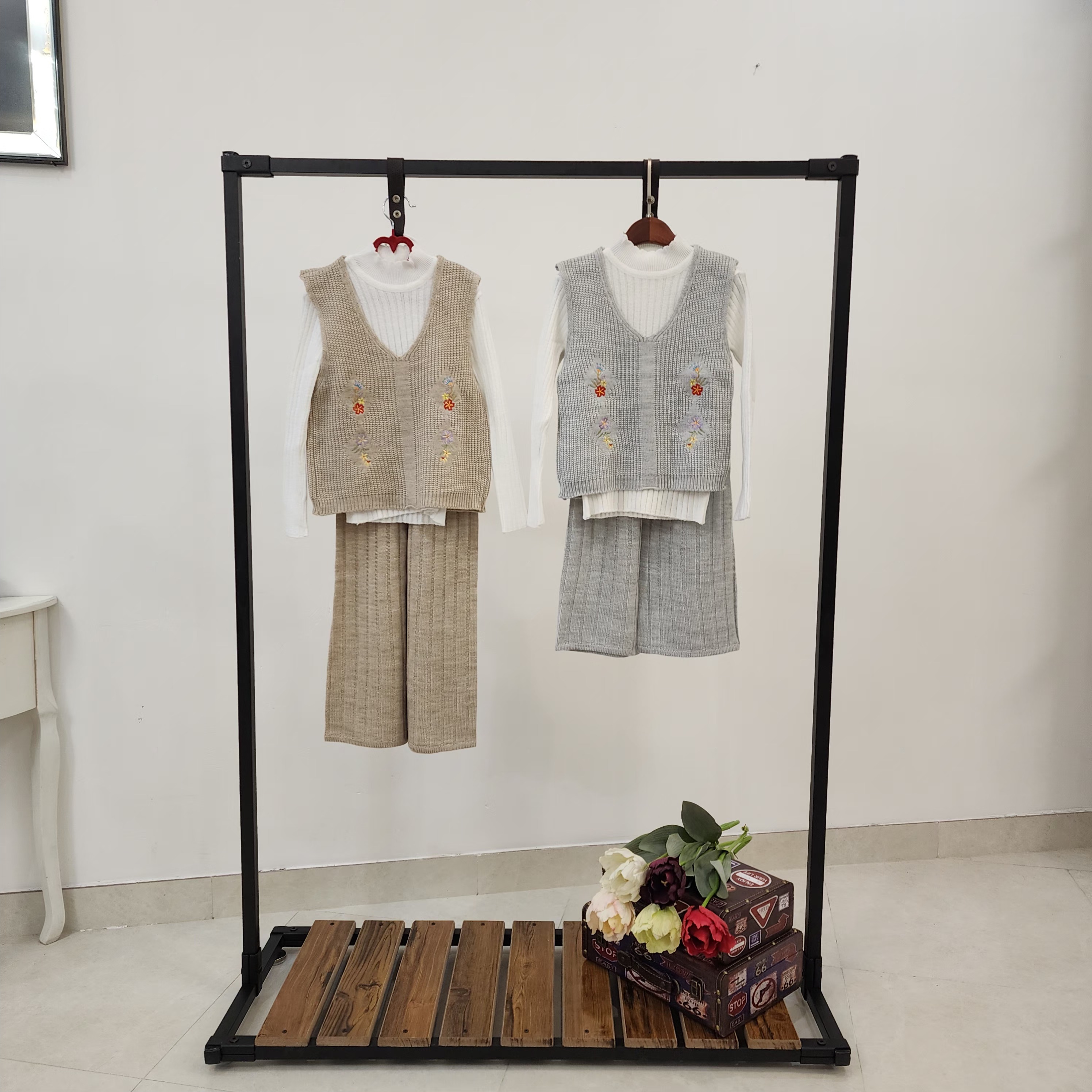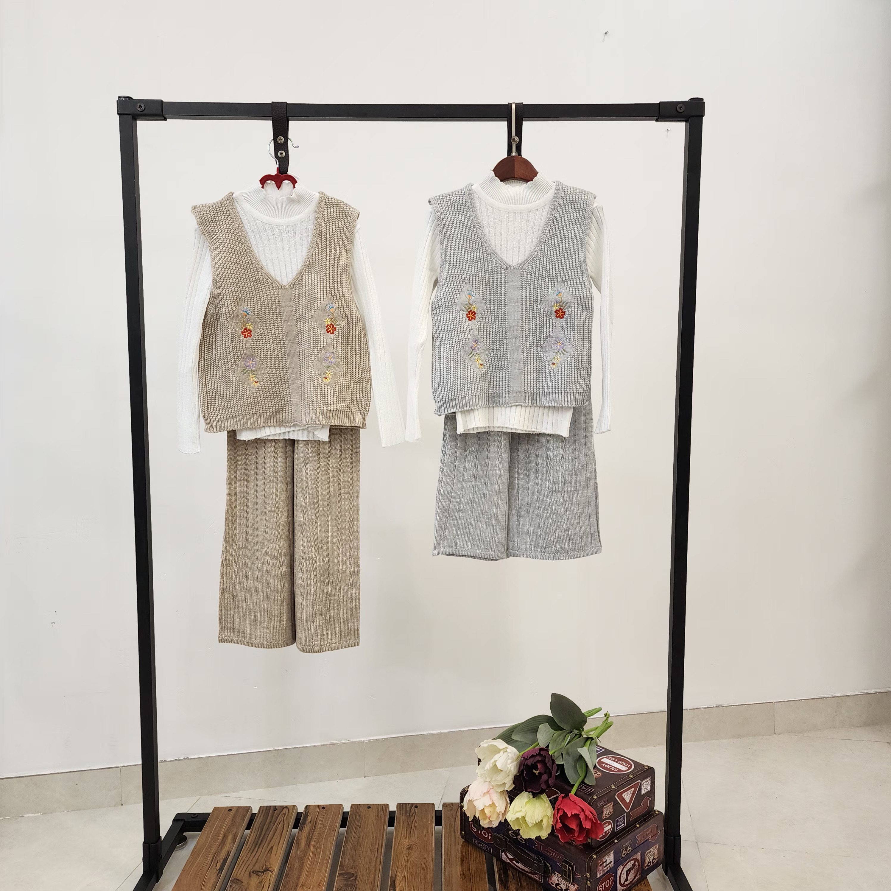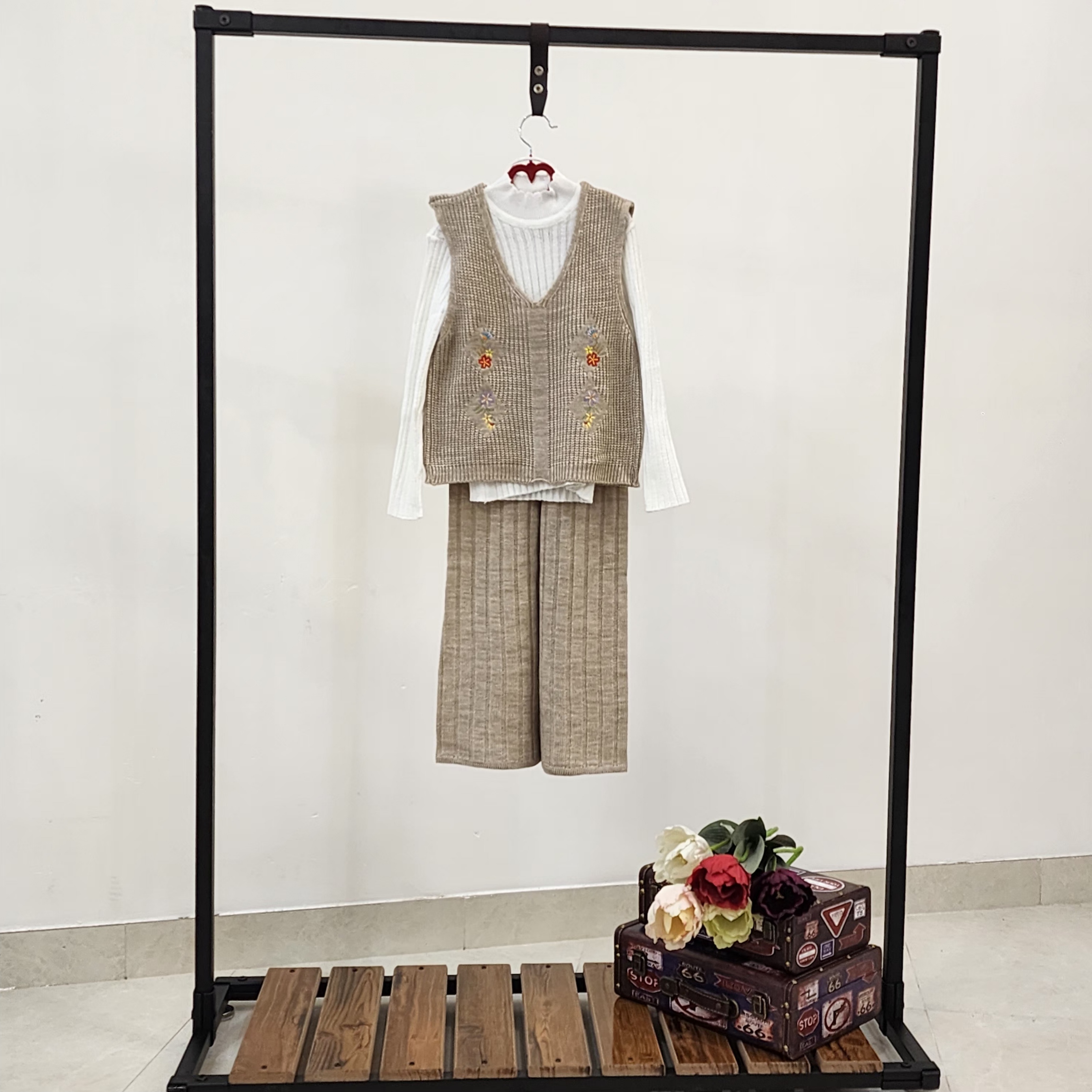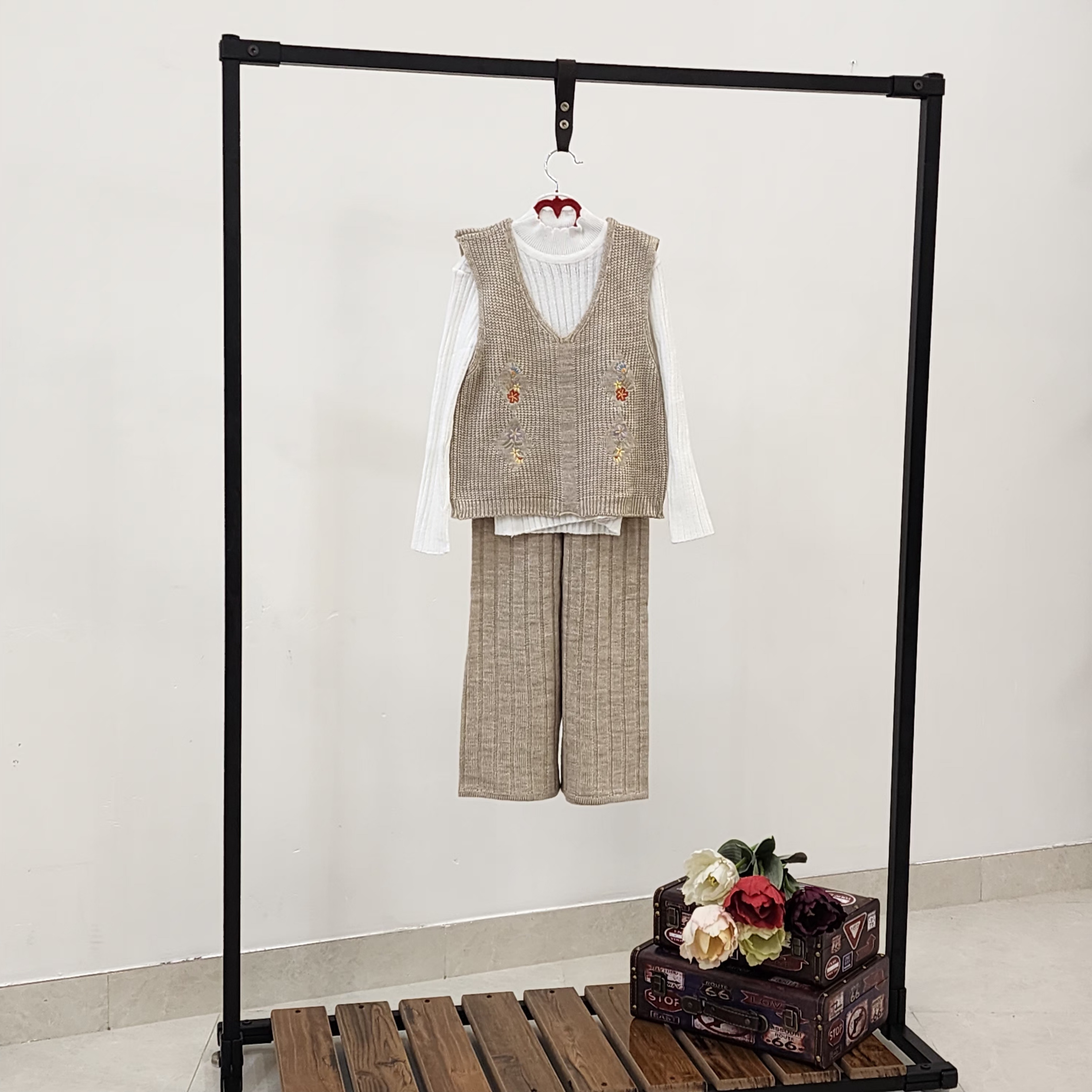ست سه تیکه بافت دخترانه شلوار و ژیله گلدار