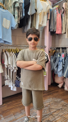ست تیشرت آستین کوتاه و شلوارک طرح بافت دخترانه پسرانه اسپرت