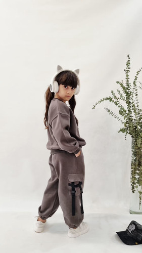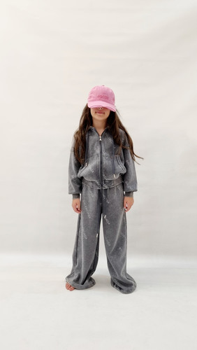 ست سویشرت و شلوار اسپرت سنگشور طوسی دخترانه اکلیل دار